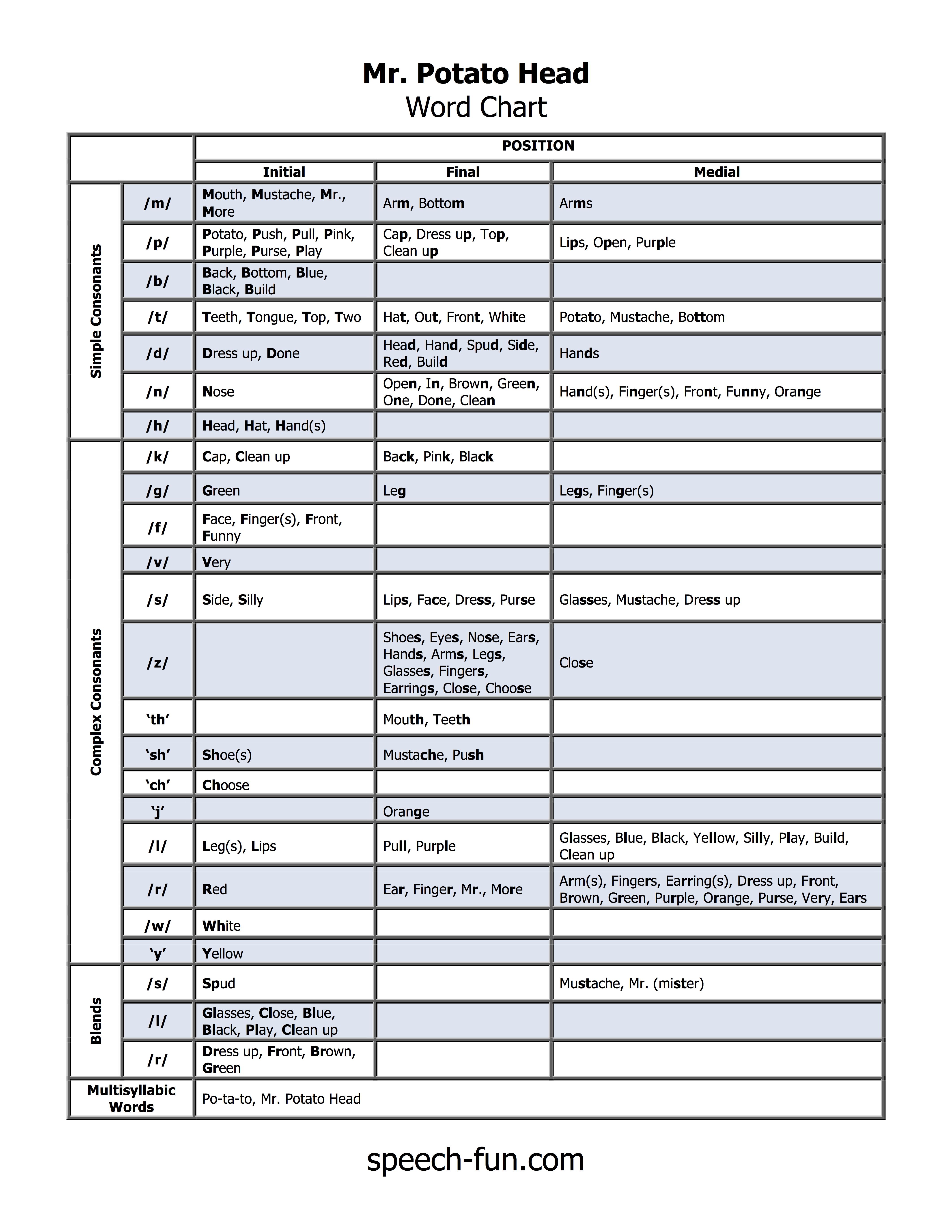 - You can find target words on the Brown Bear Speech Chart.